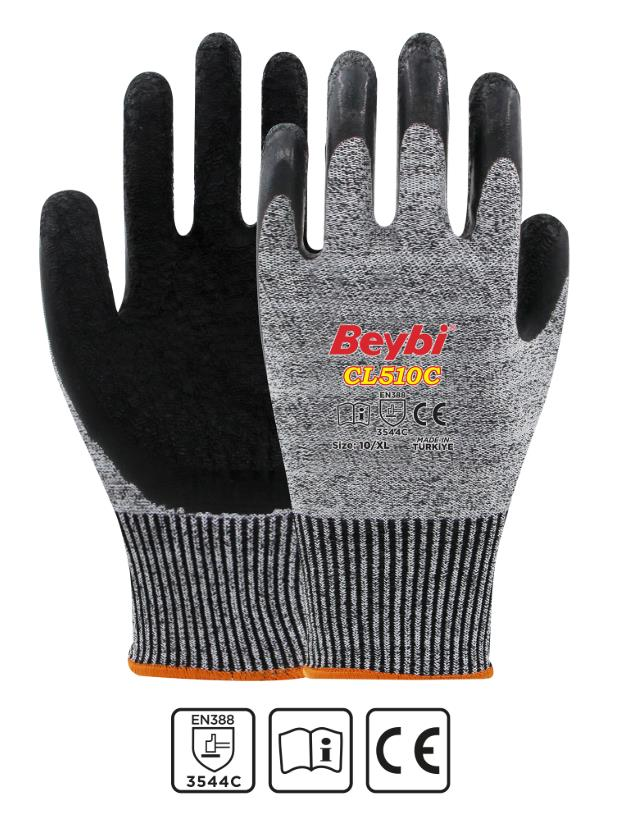 CL510C eldivenler kesilmeye dayanıklı polietilen iplik kullanılarak örülmüş özel bir astara sahiptir. Kesilmeye dayanıklı olan astar üzerindeki lateks kaplaması ile güvenlik, konfor ve sağlamlığı bir arada sunmaktadır. Crinkle (kırışık) yapısı üst düzey kavrama ve kaydırmazlık kabiliyeti sunar. Astar yapısı elinizin hava almasını sağlar, terletme yapmaz. Esnek konç yapısı bileğinize tam uyumludur. Aşınma, kesilme, yırtılma ve delinmeye karşı uzun süre dayanıklıdır.